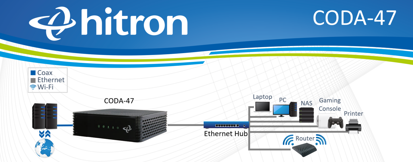 Deploy the CODA-47 on either a DOCSIS 3.1 or 3.0 network. As a DOCSIS 3.0 modem, the CODA-47 supports 32 bonded downstream and 8 bonded upstream channels.