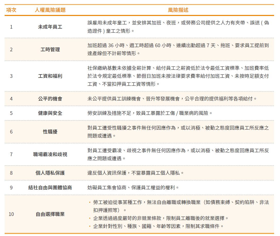 人權風險重大議題