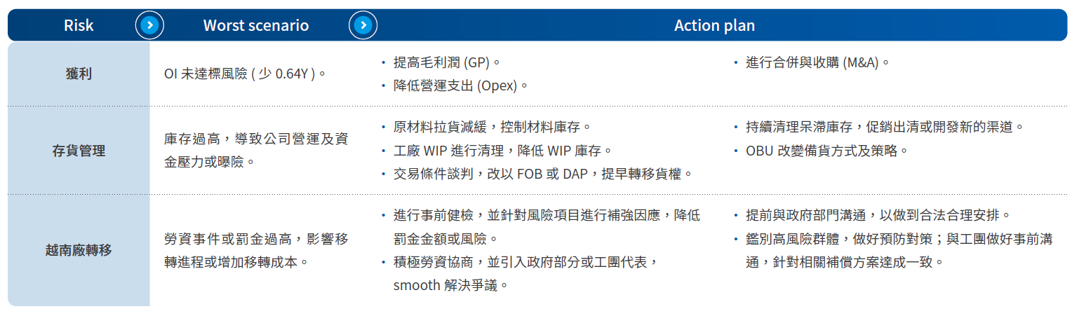 ● 風險對策(錦囊)、與執行對策之預期成效。