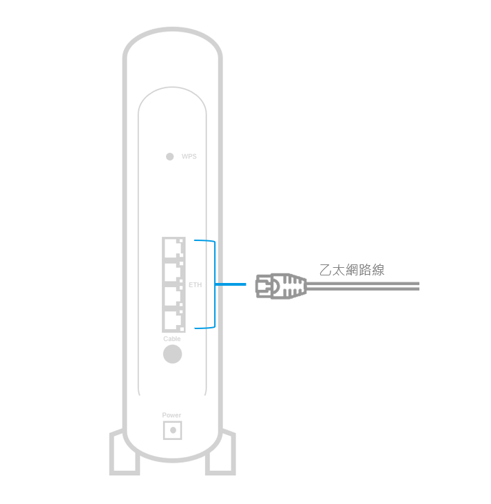 請先將電腦連線至該數據機的有線網路接孔。